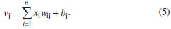 In Figure 1, xi ( i =1, 2, ..., n), yj ( j =1, 2,... , m) and wij is the input variables, output variables and the element of connection weight matrix W respectively. And bj is the bias vector, which corresponds to the thresholds. The symbol fact( ) means the activation function. Before the training procedure, input and output variables are normalized. When the network is executed, it effectively multiplies the input variables by the weight matrix W, and then adds the bias vector bj. Hence, the post synaptic potential (PSP) function of the neuron should be described as Equation 5: ![]() Generally, the activation function used in L-ANN is a linear function: ![]() Because there are no non-linear functions and hidden neurons in the network, L-ANN is good at solving linear problems. Actually, training a linear network means finding the optimal value of the weight matrix W to minimize the root mean squared error of the calibration set. In order to reach this goal, the known samples are always divided into two subsets: a training set and a verification set. The network is trained by using the training set, and is tested after each epoch by using the verification set. The training is terminated once deterioration in the root mean squared error of verification set is occurred. The over-fitting and over-learning are avoided in this way. Although the verification set is used to find the best network setting, actually, training algorithms do not use the verification set to adjust network weights. Standard pseudo-inverse linear optimization algorithm26 is usually used to train the network. This algorithm uses the singular value decomposition technique to calculate the pseudo-inverse of the matrix needed to set the weights in the linear output layer, so as to find the least mean squared solution. Essentially, it guarantees to find the optimal setting for the weight matrix in a linear layer. The main difference between MLR and L-ANN is the optimization algorithm. In MLR, the goal of least square algorithm is to find the minimal sum of squared residuals of the training set. As for L-ANN, the goal of training algorithm is to minimize the root mean squared error of verification set.26 Thus, the prediction ability of L-ANN is usually better than that of MLR. Leave-one-out cross-validation Leave-one-out cross-validation15-17,30 is a commonly used algorithm for estimating the predictive performance and robustness of a multivariable calibration model. Usually, practical calibration experiments have to be based on a limited set of available samples. The idea behind the leave-one-out cross validation algorithm is to predict the property value of each sample in turn with the calibration model which is developed from the other samples. When applying the algorithm to a dataset including n samples, the calibration modeling is performed n times, each time using (n-1) samples for modeling and one sample for testing. Hence, the procedure of leave-one-out cross validation can be divided into n segments. In each segment i (i = 1, ... , n), there are three steps: (1) taking sample i out as temporary 'test set', which is not used to establish the calibration model, (2) developing a calibration model with the rest (n-1) samples, (3) testing the established model with sample i, computing and storing the prediction error of the sample. The advantage of leave-one-out cross validation over random sub-sampling is that each sample is used for validation exactly once. Although leave-one-out cross-validation is an effective and commonly used method, there is still the risk of overestimating the predictive performance and robustness of a model when using this method. It is common to use two or more validation methods for estimating a calibration model. The risk of overestimation can be effectively lessened in this way. External validation External validation17,25,30 is an algorithm which has been often used to assess the predictive ability of a calibration model. When using this algorithm, working dataset is split into two subsets: a calibration set, which is used to develop the calibration model, and a test set, which is used to assess the predictive ability of the developed model. Obviously, test set is designed to give an independent assessment of the predictive performance of the developed model. It is not used in developing the model at all, and hence is independent of the calibration set. Generally, the calibration set and test set are randomly selected from the working dataset. Software All the calculation was done by using subroutines developed in MATLAB (Ver.7.0). The computation was performed on a personal computer equipped with an i5-2450M processor.
