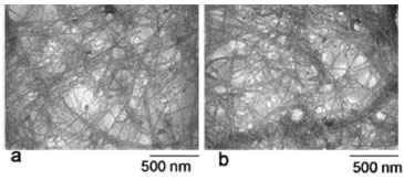 ![]() Figure 3. Micrographs obtained using TEM of the nanofibrillated cellulose: extracted at 30 min (a) and 60 min (b)