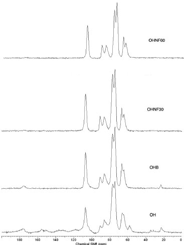 ![]() Figure 7. 13C solid state NMR spectra of OH, OHB, OHNF30 and OHNF60
