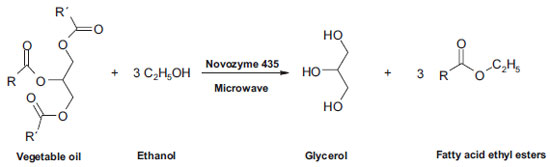 | Microwave activation of immobilized lipase for transesterification of vegetable oils |