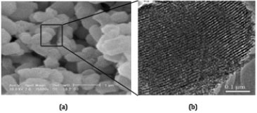 ![]() Figure 2. SEM image (a) and TEM image (b) of SBA-Pr-SO3H