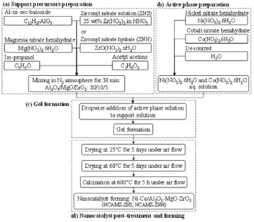 ![]() Figure 1. Sol-gel synthesis steps of Ni-Co/Al2O3-MgO-ZrO2 nanocatalyst