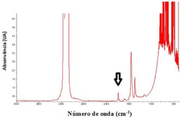 RESULTADOS E DISCUSSÃO Análise das amostras por espectroscopia na região do infravermelho As amostras foram analisadas por espectroscopia na região do infravermelho (IV) para a determinação do percentual de biodiesel no diesel, de acordo com o método de referência, EN 14078 (2009). A título de exemplo, na Figura 2 é apresentado o espectro na região do IV de uma amostra B5 (5% de biodiesel e 95% de diesel S500).