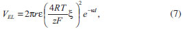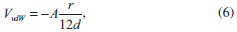 A teoria DLVO considera unicamente as forças de van der Waals (atrativas) e as forças eletrostáticas (repulsivas) para o tratamento da estabilidade coloidal. No entanto, deve-se ter em mente que várias outras interações podem estar presentes nos sistemas coloidais (Figura 2(b)), que são chamadas de forças não-DLVO, contribuindo com diferentes intensidades para a atração/repulsão de partículas. As forças atrativas, cuja tendência é a de agregar as partículas e de desestabilizar a suspensão coloidal, compreendem as forças de depleção, as interações hidrofóbicas e as forças de van der Waals. Forças de depleção são decorrentes da adição de um polímero não-adsorvente em suspensões concentradas, como resultado do aumento do volume livre na fase contínua (e consequente diminuição do volume disponível às partículas, que tendem a ser "excluídas" da suspensão). As interações hidrofóbicas também possuem contribuição apreciável apenas na presença de tensoativos adsorvidos à superfície das partículas ou no caso de coloides com superfície consideravelmente hidrofóbica. Tais interações são de natureza entrópica, decorrentes da introdução de uma organização adicional às moléculas do solvente de modo a excluir a cauda apolar do surfactante ou a superfície da partícula, aumentando, assim, a energia livre do sistema. Consequentemente, há a tendência da minimização da área interfacial entre as superfícies apolares e o solvente através de sua agregação mútua, o que pode levar à coagulação das partículas em suspensão. Por fim, as principais interações atrativas entre partículas coloidais, e únicas a serem intrínsecas ao sistema (isto é, independentes da presença de polímeros ou surfactantes adsorvidos), são as interações de van der Waals. Tais interações provêm de forças eletrostáticas decorrentes de flutuações na distribuição de cargas ao redor dos átomos. No caso de uma interação entre dois átomos separados por uma distância d (o que corresponde, portanto, a uma interação do tipo dipolo induzido/dipolo induzido), a força atrativa entre ambos é inversamente proporcional a d6. Ao se considerarem duas partículas esféricas idênticas separadas por uma distância d, o potencial atrativo de van der Waals é dado por: ![]() em que A é a constante de Hamaker (dependente da natureza das partículas e da composição do meio, assumindo valores entre 0,25 e 25 kBT, sendo kB a constante de Boltzmann e T a temperatura absoluta) e r é o raio das partículas. As forças repulsivas, que têm a tendência de manter as partículas coloidais isoladas em suspensão, compreendem as interações de solvatação, as interações estéricas e as forças eletrostáticas. As interações de solvatação têm origem na repulsão causada pela presença de uma camada de moléculas de solvente nas proximidades da superfície da partícula. Contudo, por envolver as normalmente pouco volumosas moléculas de solvente, esse tipo de interação somente é efetiva quando se consideram superfícies altamente solvofílicas e pequenas distâncias de separação entre partículas, resultando em uma baixa contribuição para a estabilidade coloidal. A estabilização coloidal por repulsões estéricas, por outro lado, é consideravelmente importante para o balanço das forças do sistema quando da presença de (macro)moléculas adicionais. Tais interações envolvem a adsorção ou ligação química de moléculas orgânicas à superfície das partículas, de modo que o impedimento estérico entre essas espécies limita a distância entre as partículas a separações em que as interações de van der Waals são desprezíveis. Para que as repulsões estéricas sejam, de fato, efetivas para a estabilização coloidal, é fundamental que as moléculas orgânicas adsorventes tenham, ao mesmo tempo, uma intensa interação com a superfície das partículas e uma alta afinidade pelas moléculas do solvente (de modo a se minimizarem as interações hidrofóbicas). As mais importantes interações repulsivas são as interações eletrostáticas devidas à existência de uma carga líquida na superfície das partículas. A origem dessa carga líquida pode ser explicada através de diversos mecanismos, tais como reações com íons H3O+ e OH- (protonação/desprotonação), dissociação/ionização de grupos de superfície, adsorção preferencial de íons reticulares, quimissorção de íons, adsorção de surfactantes iônicos ou polieletrólitos etc. Como consequência, e a fim de se manter a neutralidade elétrica no sistema coloidal, os íons dissolvidos na fase contínua assumem uma organização preferencial nas proximidades das partículas, que pode ser descrita através de um modelo da dupla camada elétrica (Figura 3).
