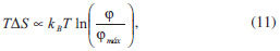 O termo ΔGE da equação (8) é associado às interações atrativas e repulsivas entre os agregados micelares, de modo que sua parcela atrativa é devida às forças de van der Waals entre as micelas, enquanto a fração repulsiva é dada pelas interações eletrostáticas entre as duplas camadas elétricas e pelas repulsões estéricas envolvidas na formação da microemulsão. Tais fatores são relacionados à natureza dos componentes e eletrólitos presentes na microemulsão, sendo, também, relacionados à curvatura do filme interfacial e à razão surfactante/cossurfactante. De acordo com as equações (6) e (7), ao se considerarem altos valores de separação entre as estruturas micelares, tanto o potencial atrativo quanto o repulsivo tornam-se desprezíveis em comparação às outras contribuições à energia livre de dispersão. Já em baixas separações, o potencial atrativo de van der Waals é muito pequeno frente ao potencial repulsivo das duplas camadas elétricas, de modo que a contribuição das interações de van der Waals ao termo ΔGE pode ser desprezada.148 Dessa forma, a contribuição dos efeitos de atrativos e repulsivos à energia livre de dispersão pode ser associada apenas à repulsão entre as gotas dispersas no sistema, de modo que: ![]() em que a integral representa o trabalho necessário para a aproximação de duas gotas de mesma carga nos volumes disponíveis para as fases macroscópicas contra o potencial elétrico de repulsão. Esse termo também é positivo, uma vez que é necessário trabalho externo para confinar um grande número de partículas de carga similar em um volume finito. Dessa forma, a formação da microemulsão somente será favorável se o termo entrópico compensar a soma dos efeitos de aumento de área e de repulsão representados pelas equações (9) e (10). O termo entrópico é dado por ![]() em que φ e φmáx correspondem à fração de volume ocupada pelas gotas no sistema e a fração volume que a fase dispersa ocuparia considerando-se o máximo empacotamento possível para esferas rígidas (arranjo cúbico centrado nas faces ou hexagonal densamente empacotado). Como o volume excluído pelo movimento térmico e pelas repulsões não é desprezível, tem-se que φ >φmáx em qualquer situação, de modo que o termo entrópico é sempre positivo. Assim, a microemulsão se manterá termodinamicamente estável quando ΔGI + ΔGΕ < TΔS. Dentre a vasta gama de aplicações das microemulsões, que vão desde sistemas de drug-delivery à recuperação terciária de petróleo,37,46,153-155 uma de suas mais elegantes utilizações consiste em seu emprego como meios micro-heterogêneos para a realização de diversas reações químicas.156-162 Nesses casos, são frequentemente utilizadas microemulsões reversas (ou "inversas"), em cujo núcleo aquoso acontecem as reações de precipitação, sendo que o sólido tem seu tamanho e forma modulados pelas propriedades estruturais dos agregados micelares, no que se pode chamar de "química de zeptolitros". Tais microemulsões reversas podem ser caracterizadas pela razão molar entre água e surfactante, ω0:43 ![]() Esta razão pode ser relacionada ao raio da micela reversa, considerando-se que o volume micelar VM é dado pela soma dos volumes ocupados pela água e pelo surfactante: ![]() em que nS e nA são os números de mols de surfactante e água por micela e VS e VA seus volumes molares. Assumindo que a área superficial da micela AM é definida apenas pelo surfactante, temos que: ![]() Combinando-se as equações (12), (13) e (14), obtém-se uma expressão para o raio micelar: ![]() que relaciona diretamente o tamanho da micela reversa à razão água/surfactante utilizada para a composição da microemulsão (sendo os demais parâmetros constantes características do surfactante). Embora tal relação seja bastante objetiva, sua aplicação em sistemas reais é consideravelmente complexa, uma vez que as microemulsões se formam somente em faixas relativamente estreitas de composição, além de frequentemente ocorrer a presença de um quarto ou quinto componente na mistura (cossurfactantes). Além disso, fatores como força iônica e temperatura também influenciam o equilíbrio de fases. Dessa forma, a relação entre o raio micelar e a razão água/surfactante é geralmente determinada de forma empírica, de onde se derivam os parâmetros do surfactante para cada sistema. A realização de reações em microemulsões deve considerar a natureza dinâmica de tais sistemas, uma vez que diversos tipos de processos são envolvidos em uma ampla faixa de escalas de tempo. Por exemplo, os processos dinâmicos envolvidos na formação de microemulsões compreendem desde a escala de picossegundos (movimento das cadeias alquílicas nos agregados) à escala de microssegundos a minutos (dissolução de água ou óleo entre as fases).163 Os processos dinâmicos de interesse particular à realização de reações químicas em microemulsões são a troca de moléculas de surfactante entre o agregado e a fase contínua (~100 ns) e a colisão/coalescência das gotas (µs a ms). As reações em microemulsões reversas envolvem o movimento browniano a que estão sujeitos os agregados, que resulta em frequentes colisões entre as micelas. Em parte dessas colisões, há a formação de dímeros micelares de vida curta através da remoção de algumas moléculas de surfactante para o interior da fase contínua. Nessas ocasiões, ocorre a troca dos conteúdos (aquosos, no caso de microemulsões reversas) das duas micelas durante o período de vida do dímero (~100 ns a poucos microssegundos), levando a uma distribuição homogênea de todos os componentes após sua descoalescência (Figura 7). Assumindo-se que a colisão, coalescência e troca de conteúdo (também chamado de "solubilizato") entre agregados envolvam um tempo característico τex e que a reação química de interesse envolva um tempo 