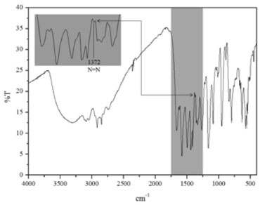 ![]() Figura 5. Espectro de IV do produto reacional, o azo composto híbrido (3)