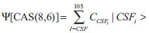 A função de onda 1A (grupo pontual C1, ou seja, sem simetria espacial) CAS(8,6), gera um total de 120 determinantes de Slater, que corresponde a 105 CSFs; como vimos anteriormente, o número de termos que serão incluídos na expansão full ci (Equação 1) no espaço ativo é muito menor quando trabalhamos com CSFs. ![]() Neste exemplo, teremos cinco funções de onda CAS(8,6), cada uma delas caracterizadas por um conjunto de coeficientes CSFi associados a cada uma das 105 CSFs (|CSFi >); por sua vez, as CSFs são construídas a partir de um único conjunto de orbitais moleculares, que é composto pelos orbitais naturais médios. A seguir, faremos as análises empregando os resultados obtidos com o programa MOLCAS (Figura 8); no entanto, o mesmo raciocínio pode ser feito para qualquer outro programa. A lista completa pode ser encontrada nos anexos (Material Suplementar).
