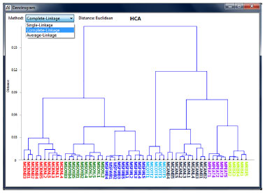 ![]() Figura 4. Gráfico do tipo dendrograma HCA - ligação completa do ChemoStat versão desktop