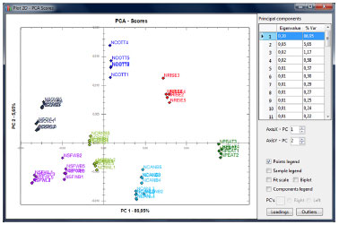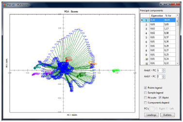 ![]() Figura 5. Gráfico de scores PCA do ChemoStat versão desktop