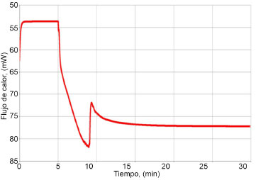 ![]() Figura 3. Curva DSC típica obtenida en modo isotérmico para la mezcla SBR/0.81PDC/sylvalite @ 170 ºC
