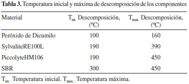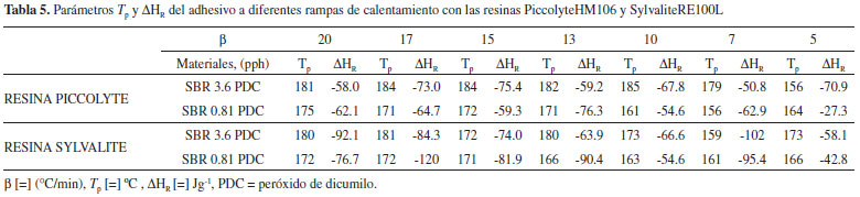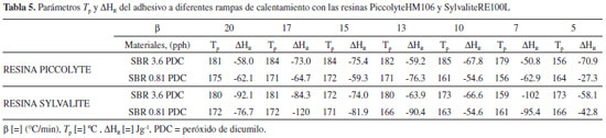 | Evaluación térmica del curado de adhesivos base SBR usando peróxido de dicumilo Thermal evaluation of curing of SBR based adhesives using dicumyl peroxide |
