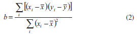 ![]() Figura 2. Intervalos de confiança a partir de uma regressão: (a) simples e (b) ponderada