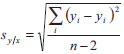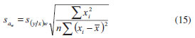 Os desvios padrão (erro padrão) dos coeficientes (inclinação, ![]() ![]() Os intervalos de confiança para estes coeficientes, também, são calculados analogamente pela Equação (13).