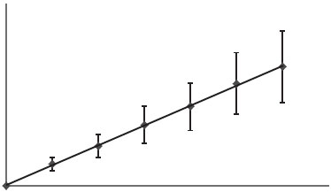 O intervalo de confiança, IC, para x0 pode ser calculado pela Equação (5): ![]() Regressão linear ponderada Entretanto, em alguns casos, o desvio padrão dos valores de y, sinal, aumenta com a concentração, Figura 1, comportamento heterocedástico. Estas curvas são melhores ajustadas por uma regressão linear ponderada.