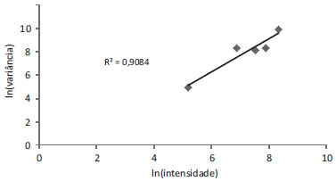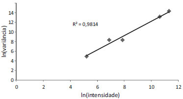 ![]() Figura 6. Modelo utilizado para estimar a variância dos dados da Tabela 6