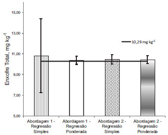 ![]() Figura 7. Intervalos de confiança para as previsoes na faixa de 10 mg kg-1