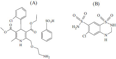 ![]() Figura 1. Estrutura química do AML (A) e HTZ (B)