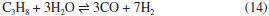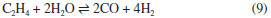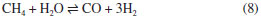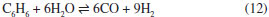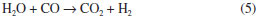 De acordo com Hamelinck et al. os processos envolvem as seguintes etapas: (1) pré-tratamento da biomassa lignocelulósica; (2) gaseificação; (3) limpeza do gás de síntese; (4) reforma de hidrocarbonetos; (5) ajuste da razão H2/CO (shift); e (6) síntese de biometanol.11,16 No entanto, muitas configurações para a síntese de biometanol são possíveis, assim como muitos dos processos podem ser feitos de maneiras diferentes, com reatores distintos e métodos de operações diferentes. Os processos brevemente citados neste estudo foram retirados da literatura, obtendo boa eficiência na conversão e valores teóricos de biometanol quando comparados com metanol derivado de fontes não renováveis.11,16 Pré-tratamento da biomassa As fontes de matéria-prima mais apropriadas para esta aplicação são madeira e resíduos de madeira. A preparação da matéria-prima depende das características da biomassa e do gaseificador, e normalmente inclui a redução granulométrica da biomassa e a sua secagem.14,38 A composição da biomassa utilizada afeta na composição final do gás obtido.39 Para gaseificar a biomassa, a matéria-prima deve passar por um processo de pré-tratamento para que o tamanho de partículas da biomassa e sua umidade, ao entrar no gaseificador, sejam controlados. Segundo Basu et al., a tolerância de umidade para combustíveis em gaseificadores de leito fluidizado é em torno de 5-10% para que a gaseificação seja eficiente.14 Biomassa com maiores umidades aumentam a necessidade de energia no sistema, já que a evaporação da água é um processo endotérmico.14 E como a biomassa de madeira fresca é tipicamente em torno de 50% de umidade e composta por particulados grandes, exige-se um pré-tratamento do material, baixando a sua umidade com secadores a ar quente e diminuindo o tamanho da biomassa com trituradores. A secagem pode ser feita diretamente, com ar quente ou pode ser feita indiretamente, por condução com uma superfície quente. A alimentação da biomassa em gaseificadores de leito fluidizado, para uma maior eficiência de operação, deve ser feito com partículas entre 0-10 mm para o caso de uma alimentação por baixo do leito.14 O fator limitante de tempo de gaseificação é a troca de calor com a biomassa e o ambiente no reator, sendo que partículas menores trocam calor mais rapidamente, o que acelera o processo de volatilização e combustão da biomassa.14 Por isso, deve-se diminuir o tamanho das partículas da biomassa para o processo de combustão. Gaseificação A seleção e o projeto de qualquer sistema de gaseificação de biomassa são determinados, principalmente, pelas características da matéria-prima, legislação ambiental vigente, custos e desempenho do equipamento avaliado, como também pela capacidade necessária.38 É um processo que converte biomassa sólida em um gás sintético, composto, principalmente, de hidrogênio, monóxido de carbono e dióxido de carbono. O processo envolve uma combustão parcial da matéria sólida em ambiente controlado para obter o gás de síntese.40 No reator de gaseificação ocorrem, basicamente, quatro reações: (1) secagem; (2) pirólise; (3) combustão e (4) redução.14 Em reatores de leito fluidizado não existem zonas diferenciadas para as reações.41 A secagem é um processo endotérmico, que capta o calor da combustão e usa-o para evaporação da água presente na biomassa sólida, retirando a umidade. No começo da pirólise, quando a biomassa atinge temperaturas entre 230 ºC e 350 ºC, componentes termicamente instáveis como a lignina são quebrados e evaporam com outros compostos voláteis. Temperaturas da pirólise podem chegar a 1000 ºC, mas com produção de gás final de baixo valor energético. A pirólise também é conhecida como processo de retirada de voláteis, na qual são separados o vapor da água, líquidos orgânicos e gases não condensáveis do carbono sólido da biomassa. O processo pode ser representado, de maneira geral, pela equação 1, onde os "Gases" podem ser CO, CH4, H2O e CO2, "Char" é um resíduo sólido contendo principalmente carbono, e os "Vapores ou Líquidos" são compostos por alcatrão e hidrocarbonetos poliaromáticos.14 ![]() A combustão, por ser um processo exotérmico, fornece a energia térmica necessária para as demais reações endotérmicas da gaseificação: o oxigênio introduzido no reator irá reagir com o combustível produzindo CO2 e H2O, que irá ser reduzido posteriormente. As duas reações que acontecem estão representadas nas equações 2 e 3, com a oxidação do carbono e do hidrogênio, respectivamente.14 ![]() ![]() A etapa de redução (gaseificação) é composta de uma série de outras reações endotérmicas que irão ditar a composição final do gás sintético. Em geral são de interesse a maior formação de H2 e CO na composição final do gás de síntese.14 As reações de gaseificação, ou redução, são: Reação de Boudouard, Reação de Shift, reação de metanização e reação água-gás. A reação de redução Boudouard (Eq. 4) ocorre quando o dióxido de carbono presente no gaseificador reage com o Char (representado por carbono), para formar monóxido de carbono.14 ![]() A reação Shift (Eq. 5) é importante e desejável para a composição final do gás de síntese, já que reduz vapor de água com monóxido de carbono para produzir gás de hidrogênio, que tem maiores valores caloríficos.14 ![]() Metano também pode ser formado pela reação de metanização (Eq. 6), que reage o carbono presente no combustível com gás hidrogênio.14 ![]() A reação água-gás (Eq. 7) é a oxidação parcial do carbono pelo vapor de água, que pode vir de diferentes fontes no reator: da evaporação na etapa de secagem, associado ao ar de entrada, e também na pirólise.14 ![]() Para alcançar a composição mais energética possível de gás sintético, usa-se um gaseificador de leito fluidizado, pois