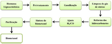 ![]() Figura 2. Esquema simplificado do processo de produção do biometanol