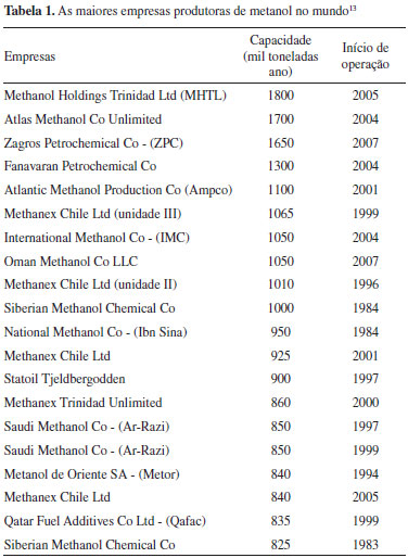 ![]() Figura 1. Principais produtos obtidos a partir do biometanol36