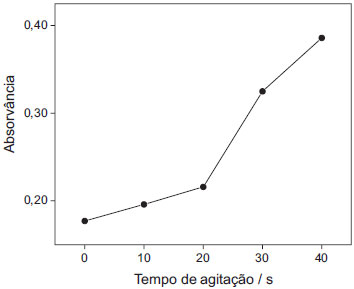 ![]() Figura 3. Efeito do tempo de agitaçao sobre o sinal analítico. Resultados obtidos com uma extraçao em diferentes tempos de contato amostra/extrator (N=1)