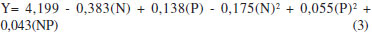Na qual X é a matriz de contraste, Xt é a transposta de X e a matriz Y é a média das intensidades normalizadas. Sendo assim, a Equação 3 foi obtida para o modelo de otimização de N e P:
