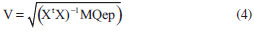 Os desvios absolutos (V) dos coeficientes da equação do modelo foram obtidos por meio da Equação 4, apresentada abaixo.21