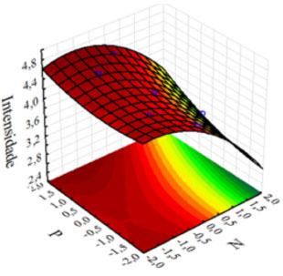A partir do modelo descrito pela Equação 3 foi possível gerar a superfície de resposta das variáveis N e P para a otimização dos cinco elementos. A Figura 2 apresenta a superfície de resposta usada para otimização das variáveis N e P.