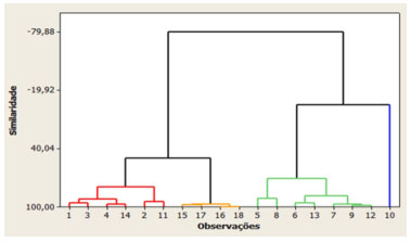 Figura 4. HCA: Dendograma correspondentes à classificaçao dos 18 extratos aquosos de petróleo