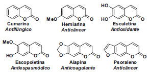 RESULTADOS E DISCUSSÃO São escassas as propostas de síntese de cumarinas descritas em manuais experimentais de química na graduação da segunda metade do século XX. Nos raros casos onde se encontra a preparação de cumarinas, os procedimentos e os exemplos são sempre os mesmos, inclusive nos livros lançados no início do século XXI.9,10 Os métodos clássicos de síntese para preparação de cumarimas estão indicados na Figura 2 e empregam como reagentes fenóis ativados e beta-cetoesteres na reação de Pechmann, 2-carboxifenóis com anidrido acético ou com compostos contendo o grupo metileno ativado, como nas condensações de Perkin e Knoevenagel, respectivamente.4