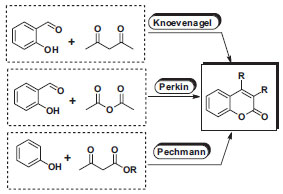![]() Figura 2. Métodos clássicos de síntese de cumarinas