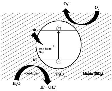 ![]() Figura 5. Esquema do mecanismo de fotocatálise no material ST