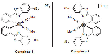 ![]() Figura 3. Complexos metálicos enantiomericamente puros com atividade foto catalítica desenvolvidos por Meggers e colaboradores