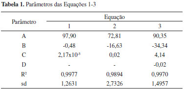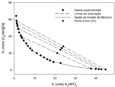 RESULTADOS E DISCUSSÃO Dados de equilíbrio de fases A Figura 1 apresenta a curva binodal, as linhas de amarração e o ponto crítico (Pc) obtidos para o SAB constituído por [C4mim][Cl], K2HPO4 e água, a 25±1 ºC. Os parâmetros de ajuste obtidos da correlação dos dados experimentais da binodal, juntamente com os coeficientes de correlação (R2) e os correspondentes desvios padrão (sd) das Equações 1-3 são apresentados na Tabela 1. A equação 1 mostrou melhor acurácia no ajuste dos dados da binodal para o sistema investigado.