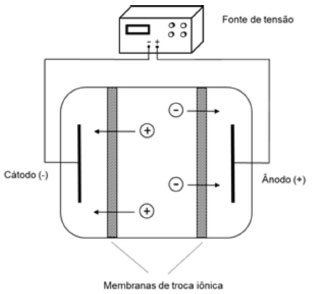 ![]() Figura 1. Esquema simplificado de um sistema de eletrodiálise