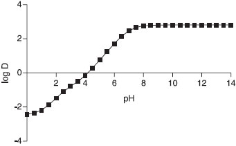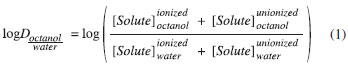 ![]() Figure 3. QTP octanol-water partitioning values (LogD) as a function of pH obtained after MarvinSketch simulation using Eq. 1
