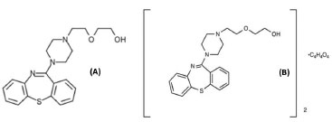 ![]() Figure 1. Molecular structure of quetiapine (A) and quetiapine fumarate (B)