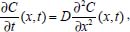 DIFUSÃO Difusão é o movimento térmico de qualquer partícula de um líquido, gás e alguns sólidos a temperaturas acima do zero absoluto. A difusão pode ser discutida do ponto de vista das leis de Fick, na presença de um gradiente de concentração, ou do ponto de vista físico e atomístico considerando o movimento aleatório das partículas, por exemplo, das moléculas de água em água pura. A difusão causada pelo movimento aleatório de partículas (moléculas, íons, átomos) na ausência de um gradiente de concentração é denominada autodifusão (self-diffusion ou tracer diffusion) e corresponde à difusão de uma espécie individualmente. Isso pressupõe que numa mistura as espécies se difundem sem interação significativa entre elas, o que equivale à situação ideal, ou seja, por exemplo, uma solução muito diluída. O coeficiente de difusão é denominado coeficiente de autodifusão. A velocidade do movimento depende da temperatura, viscosidade do meio e da massa/tamanho da partícula. A difusão explica o fluxo líquido de matéria de uma região de maior concentração para uma de menor concentração. Ao se igualar as concentrações (atividades), esse fluxo líquido de massa cessa, porém, as partículas continuam em movimento, autodifusão. Tem-se, então, uma mistura gradual de materiais até chegar a uma distribuição uniforme, estabelecendo-se um equilíbrio com partículas em movimento, denominado equilíbrio dinâmico. A difusão continua, mas sem um fluxo líquido de matéria. Para maiores detalhes sobre autodifusão sugere-se consultar a literatura.3,4,5,15,16 Em particular, neste trabalho, tem grande interesse a análise da situação em que há fluxo líquido de matéria porque está diretamente relacionado com a maioria das técnicas eletroquímicas. A difusão é um fenômeno físico irreversível em que ocorre o transporte de massa pelo movimento de íons ou moléculas, na presença de um gradiente de potencial químico. O gradiente de potencial químico pode ser substituído por gradiente de concentração no uso de técnicas eletroquímicas. O movimento causado pelo gradiente se dá na direção de maior para menor concentração, procurando encontrar um equilíbrio. A difusão pode ocorrer em uma única direção (unidimensional), como no caso do fluxo sanguíneo por uma artéria, ou ser bidimensional, como no caso de uma gota de tinta se espalhando sobre uma superfície plana, ou tridimensional, como no caso de um gás se difundindo no espaço ou de espécies químicas se difundindo em solução ou num sólido. Matematicamente é descrita por uma equação diferencial parcial, envolvendo espaço e tempo, sendo que em coordenadas cartesianas sua forma geral é: ![]() em que C representa a concentração da espécie que se difunde na posição (x,y,z) no instante de tempo t e D é chamado coeficiente de difusão. Dependendo da espécie, este coeficiente pode variar com a concentração, porém esta variação normalmente é muito pequena e, por isso, D é considerado constante na maioria dos casos, desde que não varie a temperatura. Esta equação pode também ser escrita em coordenadas esféricas ou cilíndricas, de acordo com o fenômeno que está sendo estudado, o que pode facilitar muito os cálculos. Nos processos eletroquímicos são utilizados eletrodos de diferentes geometrias como planar, cilíndrica, esférica etc. A difusão linear semi-infinita, ou seja, na direção perpendicular à superfície do eletrodo ocorre em eletrodos planos com raio maior que a espessura da camada de difusão. Nos outros casos há influência da difusão não linear: esférica (eletrodo de gota estática de mercúrio), eletrodo gotejador de mercúrio, microeletrodos, eletrodos micro heterogêneos como mini redes de metal onde a espessura do fio da rede é menor do que a espessura da camada de difusão, dentre outros.11 Assim, o objetivo deste trabalho é apresentar os métodos matemáticos presentes na equação de difusão aplicada à eletroquímica, em todos os seus detalhes, desde a dedução das equações até suas resoluções, abordando coordenadas cartesianas, esféricas e cilíndricas. Difusão planar Denomina-se difusão planar aquela que ocorre através de uma região plana, de área A, na direção (unidimensional) perpendicular ao plano. Considerando esta direção coincidente com o eixo-x no sistema cartesiano, isso significa que a concentração da espécie varia apenas na direção x, sendo constante nas direções y e z. Neste caso, o fluxo da espécie num ponto x e num instante t, J(x, t), é definido como sendo a quantidade de matéria m transferida por unidade de tempo, através da área A, ou seja, ![]() conforme ilustrado na Figura 1.