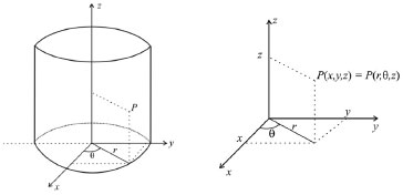 ![]() Figura 5. Visualização geométrica das coordenadas cilíndricas