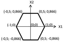 ![]() Figura 1. Valores codificados para planejamento Doehlert com ponto central em triplicata