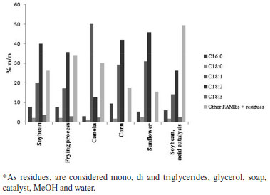 ![]() Figure 5. FAMEs percentages determined on samples of biodiesel