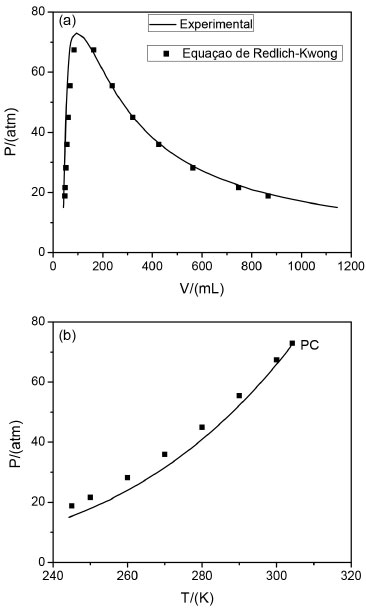 EXPERIÊNCIA EM SALA DE AULA Uma parte do problema aqui apresentado foi proposto como trabalho em grupo, a ser feito e casa, para alunos da disciplina de Físico-Química I na Universidade Federal de São João del-Rei. Foram utilizados os gases dióxido de carbono, etano, propano e butano como sistemas de estudo para diferentes grupos. Embora o trabalho tenha sido executado fora da sala de aula, houve constante interação com o professor conforme as dúvidas e resultados surgiam. As questões apresentadas foram as seguintes (todas usando a equação de Redlich-Kwong):