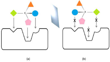 ![]() Figura 2. Reconhecimento complementar de um enantiômero (a) e não reconhecimento (b)