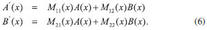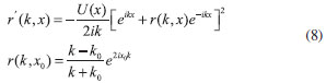 EQUAÇAO DIFERENCIAL PARA A AMPLITUDE DE REFLEXAO Uma derivaçao da equaçao diferencial para a amplitude de reflexao, com o enfoque principalmente voltado para a física de espalhamento,25 pode ser encontrada no livro de Calogero e Degasperis.26 Nesta seçao, diferentemente da abordagem adotada no livro citado, a equaçao diferencial é obtida utilizando o método da variaçao dos parâmetros conforme método geral apresentado no trabalho de Ronveaux.27 Considerando a equaçao unidimensional de Schrodinger ![]() busca-se a soluçao em termos das soluçoes particulares para o problema homogêneo associado, isto é, ψ1 = eikx e ψ2 = e-ikx. A quantidade U(x) se relaciona com o potencial V(x) por U(x) = 2mV(x)/ħ2 e o número de onda k se relaciona com a energia E por A soluçao para o problema original, Equaçao 1, é colocada na forma ![]() com a suposiçao de que ![]() que é a idéia básica do método da variaçao dos parâmetros.28 A substituiçao de ψ e sua segunda derivada na Equaçao 1 fornece ![]() As Equaçoes 3 e 4 compoe o sistema de equaçoes ![]() ou na forma matricial WX' = UWX, na qual ![]() e ![]() O vetor X' é encontrado por X' = MX com M = W-1UW, isto é, ![]() As funçoes A(x) e B(x) modulam as amplitudes das funçoes de onda incidente e refletida, portanto, segundo a interpretaçao de Born, o quadrado da razao destas amplitudes, em x → -∞, definem a probabilidade de reflexao ou coeficiente de reflexao desejado. Assim, assumindo r(x) como r(x) = B(x) / A(x), obtém-se a equaçao diferencial ![]() ou ![]() que é uma equaçao de Riccati,27 cuja soluçao em x → -∞ fornece o coefiente de reflexao R = |r(x → -∞)|2. A probabilidade de transmissao ou coeficiente de transmissao pode ser facilmente obtida da relaçao R+T = 1, que reflete a conservaçao de partículas no processo. Neste último caso, para avaliar os elementos da matriz M, calcula-se a inversa de W analiticamente. A Equaçao 7 aplica-se na condiçao em que o potencial para x → -∞ tem o valor zero. Essa condiçao pode ser sempre alcançada somando-se uma constante à energia e ao potencial. A condiçao inicial para resoluçao numérica do problema, desde que as partículas incidam sobre a barreira da esquerda para a direita, é dada por ![]() A quantidade r0 é a amplitude de reflexao para o potencial degrau V(x0)H(x - x0) com H sendo a funçao de Heaviside. O termo é de importância para potenciais com limites assintóticos VD = V(x → +∞) ≠ 0 para levar em conta a contribuiçao do potencial a direita de x0 ao se iniciar a integraçao nesse ponto. Para o caso em que V(x → +∞) = 0, nao existem partículas que se deslocam para a esquerda à direita da barreira, consequentemente, a condiçao inicial r(x → ∞) deve ser nula, portanto, r0 se reduz a zero para valores grandes de x.