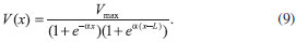 RESULTADOS E DISCUSSAO Devido à importância pedagógica do potencial barreira retangular, esse potencial será considerado como um primeiro exemplo. O segundo potencial abordado será o potencial de Eckart.29 O potencial apresenta o limite assintótico, VD ≠ 0, o que possibilita mostrar a eficiência do método para uma condiçao de contorno diferente. Para os dois casos, considerou-se que a partícula incide da esquerda para a direita. A integraçao numérica foi realizada para valores de coordenada de 20 a -20 utilizando o método de Runge-Kutta quarta e quinta ordem com passo adaptativo.30 Os cálculos foram feitos em unidades atômicas. Potencial barreira retangular Um potencial contínuo que representa uma barreira pode ser estabelecido com a funçao, ![]() No limite de α grande, o potencial tende ao potencial barreira retangular (Figura 1), em que Vmax é o máximo do potencial e L a largura da barreira.