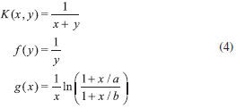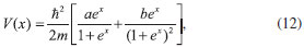 O erro médio cometido é menor que 0,05%, neste caso, o erro além de ser funçao dos parâmetros ajustáveis do método de resoluçao da equaçao diferencial que controla a precisao, é também funçao do valor α considerado para a aproximaçao. A soluçao correta é obtida tanto para E > Vmax, quanto para E < Vmax. Os valores de T > 0 para E < Vmax indicam o tunelamento das partículas, isto é, mesmo que as partículas tenham energia menor que a da barreira, ainda há uma probabilidade finita de essas a atravessarem, o que classicamente nao seria permitido. Também, mesmo que as partículas possuam energia maior que a da barreira, E > Vmax, ainda se observa T < 1, quando classicamente se esperaria T = 1. O potencial considerado se anula assintoticamente, tanto para valores negativos, quanto para valores positivos de x, um caso com condiçoes de contorno diferentes pode ser ilustrado com o potencial de Eckart.29 Potencial de Eckart O potencial de Eckart é dado pela funçao,13,29 ![]() em que a e b sao parâmetros arbitrários. O potencial possui limites diferentes como funçao dos parâmetros e possui soluçao analítica para o tunelamento o que permite a comparaçao com os resultados numéricos. Na Figura 3 é apresentado o potencial de Eckart onde se verifica a modificaçao no limite VD em funçao da modificaçao dos parâmetros.