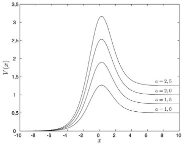 ![]() Figura 3. Potencial de Eckart para diferentes valores do parâmetro a com b = 8a
