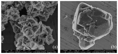 ![]() Figura 2. MEV da zeólita NaX nanométrica (a) e micrométrica (b)