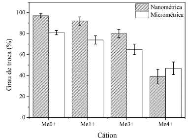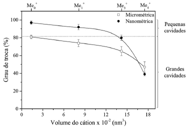 ![]() Figura 4. Máximo grau de troca iônica alcançado nas zeólitas nanométrica e micrométrica