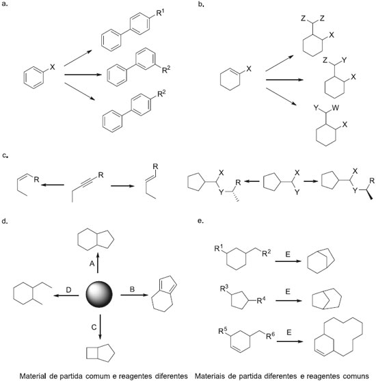 Esquema 6. Diversificaçao de esqueletos moleculares, por ramificaçao dos caminhos sintéticos, empregando substratos densamente funcionalizados